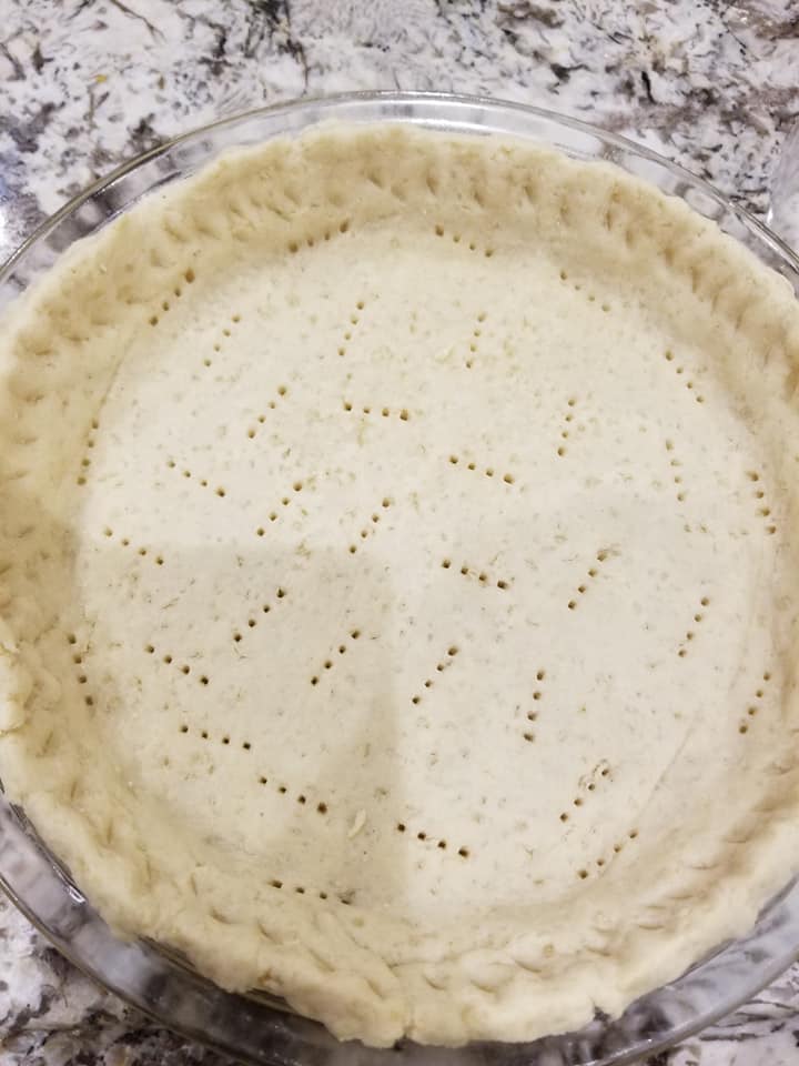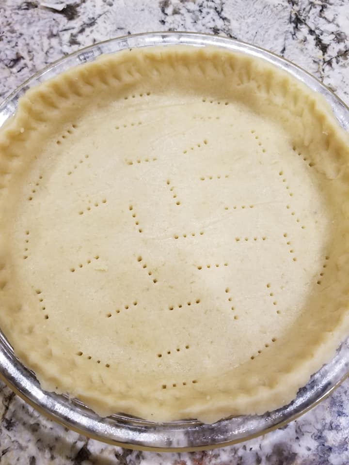 - Transfer to a baking pie dish…using the help of a fork poke holes and bake for 10mins at 350f.