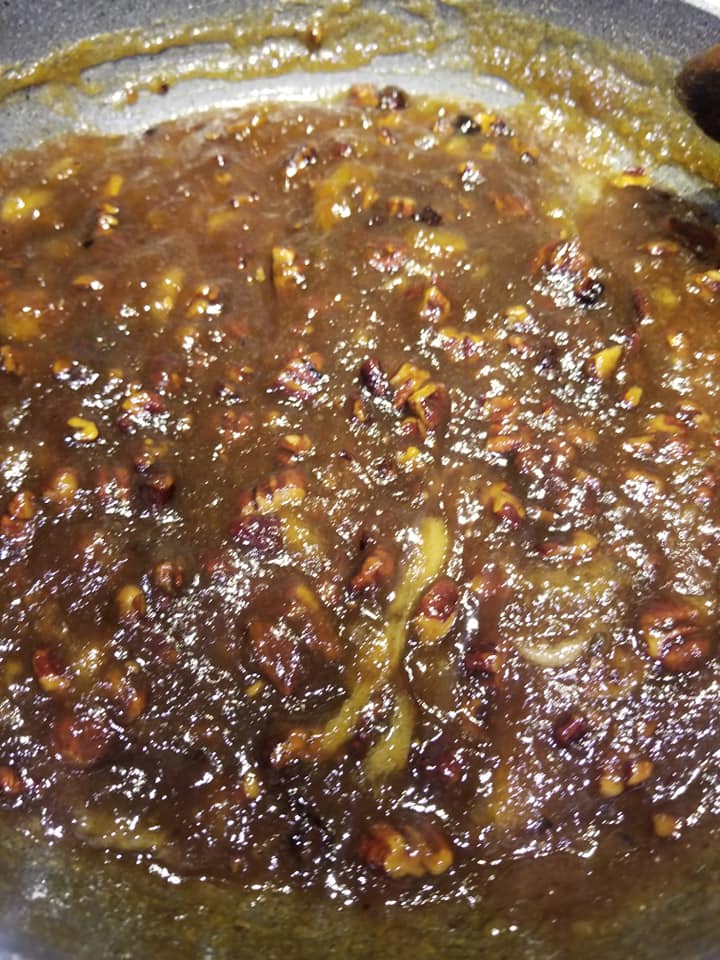 - Then add roasted chopped pecans.