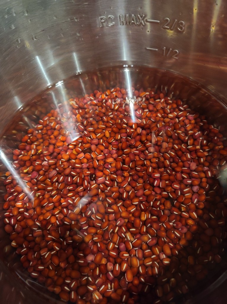 - 3-4 cups uncooked adzuki beans (washed, soaked in water for 5-6 hrs and then pressure cooked)