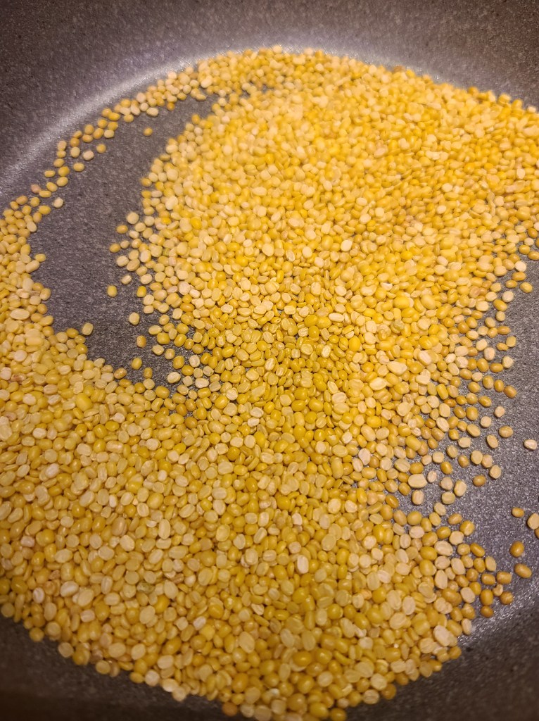 - Dry roast the mung dal till you get a nice aroma from it, wash and set aside