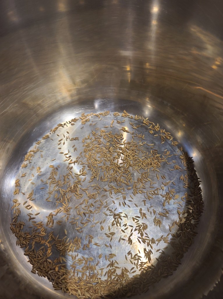 - 1 tbsp of cumin seeds for tempering