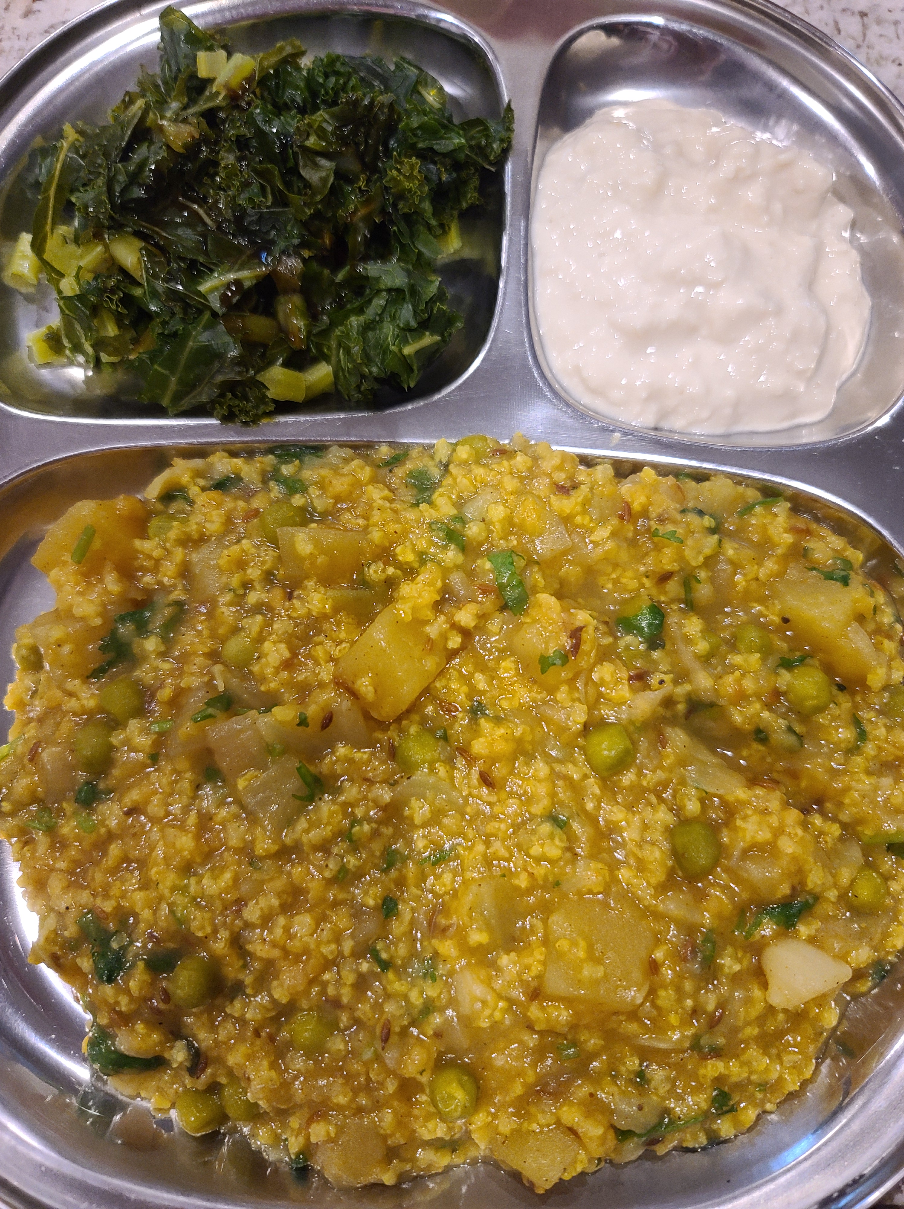 Enjoy this yummy kichari with some homemade soy yogurt and your steamed kale/balsamic vinegar