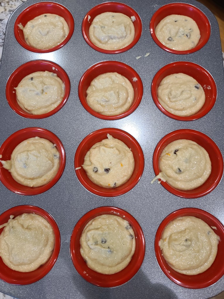 - Transfer into silicon muffin tray and bake at 350F for 15-18 mins (check after 12 mins with the knife insert test)