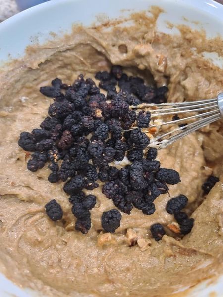 - Mix the rest of the ingredients (except for mulberries and nuts)