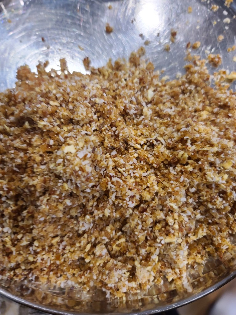 - Transfer all the ingredients into a food processer and process it you get a coarse mixture