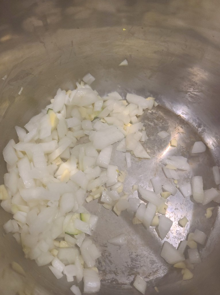 - Switch on the saute mode in the instant pot. Once the pot is hot saute onion and garlic