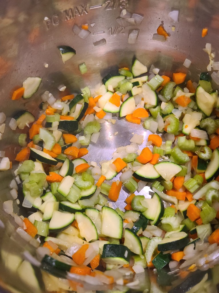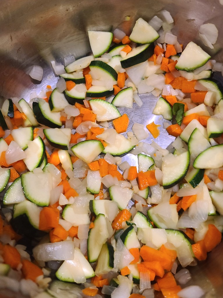 - Saute onion and garlic for about 5 mins then add the veggies (except spinach) and saute for another 5 mins