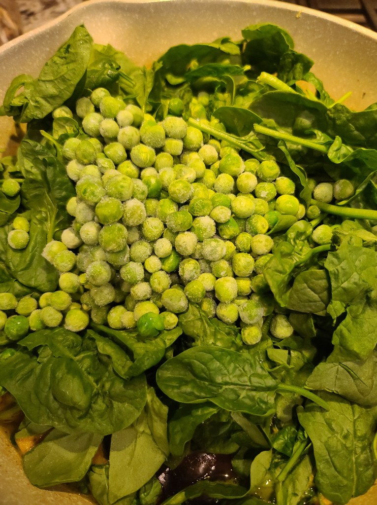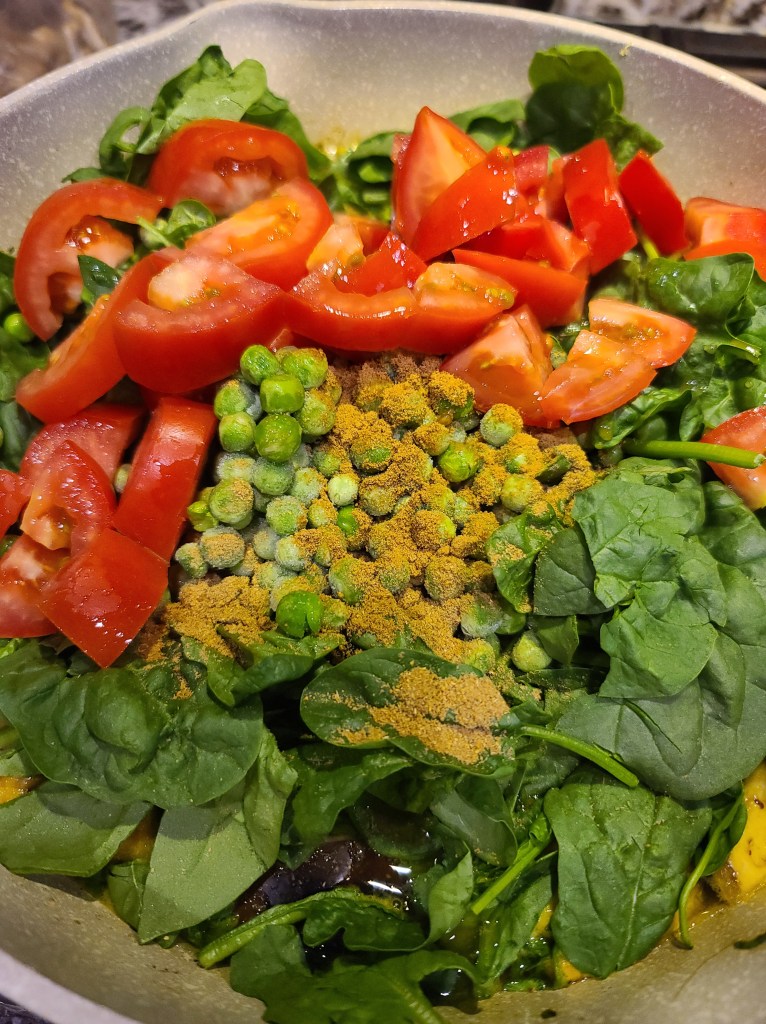 - Add all the spices, add spinach and water and either pressure cook or cook in a pan with the lid on.