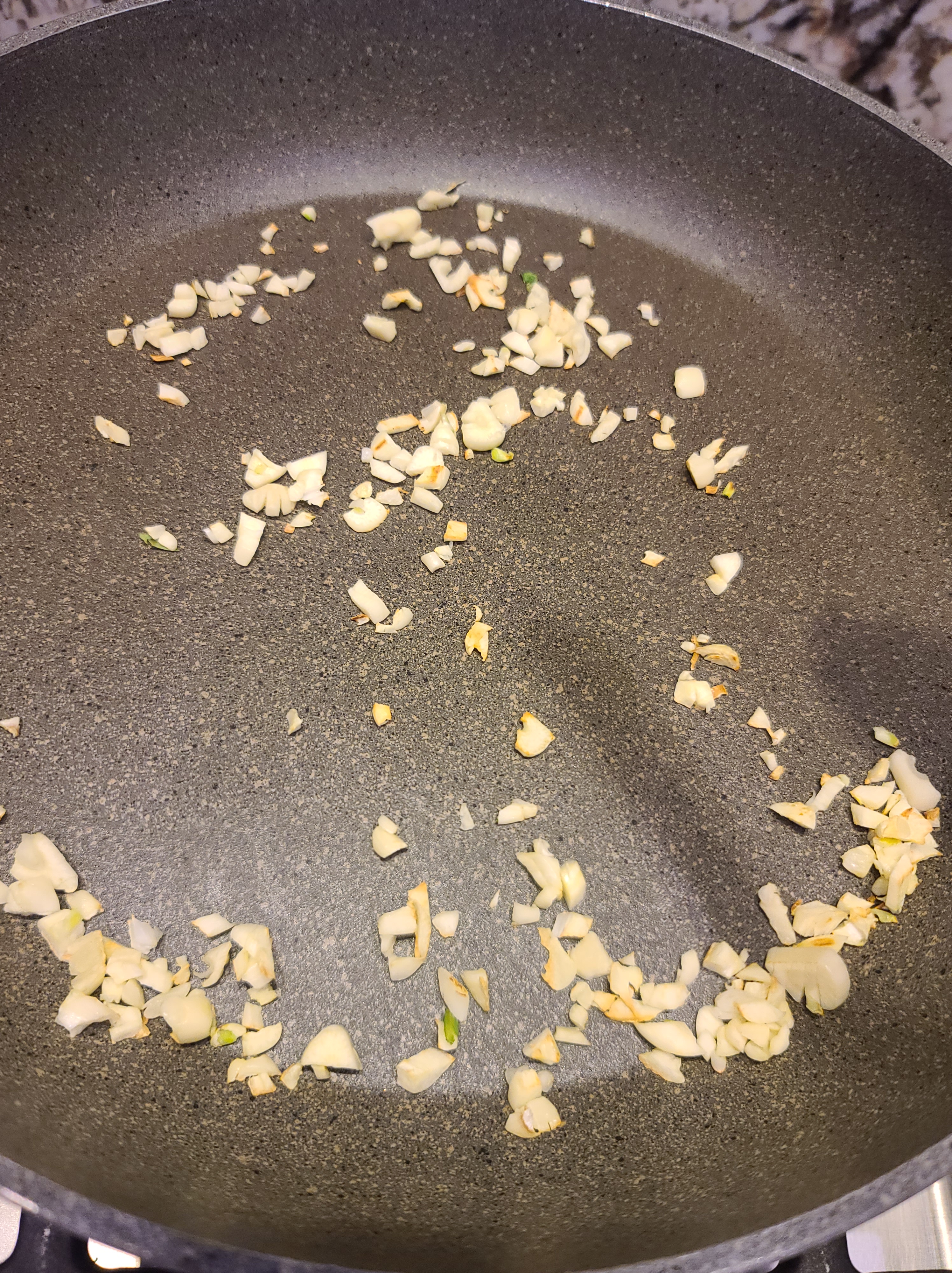 - In a good quality nonstick pan dry sauté minced garlic for 3-4 mins