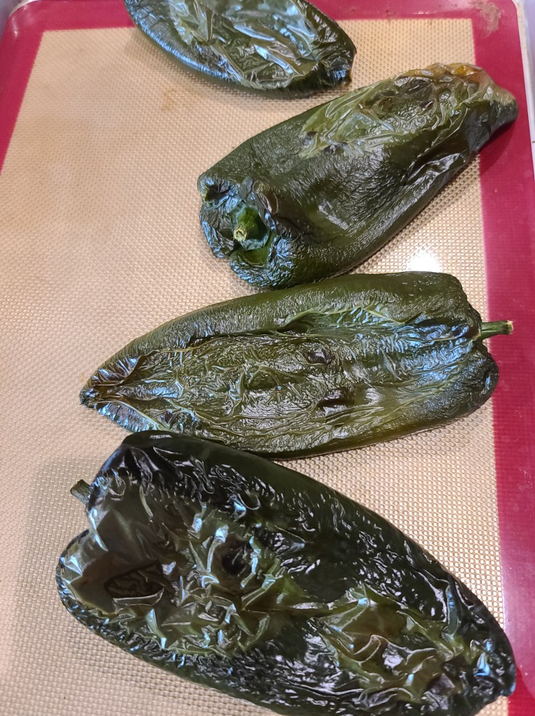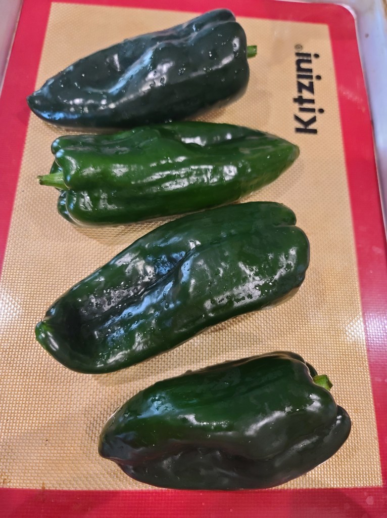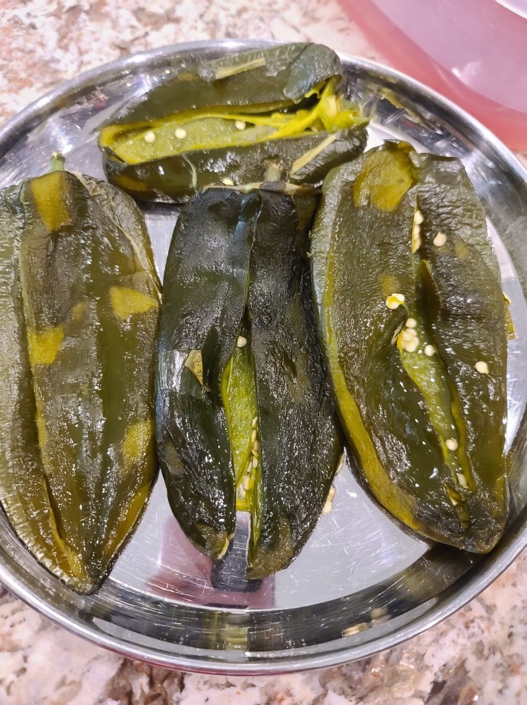 - Clean the peppers, slit in the center and bake at 400F for about 10 mins or broil for about 5-6 mins. Flip it once in between