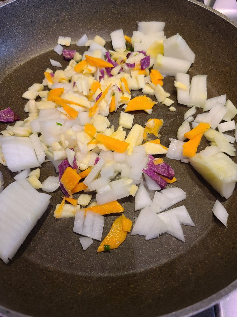 - 1/2 cup of sweet pieces (i basically used leftover pieces after preparing au gratin)