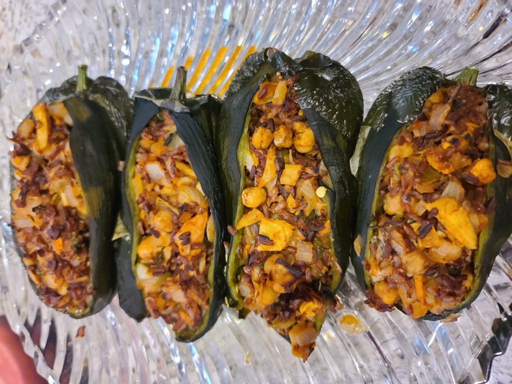 - Stuff the peppers with the stuffing you prepared and bake at 375F for another 10 mins or so.
